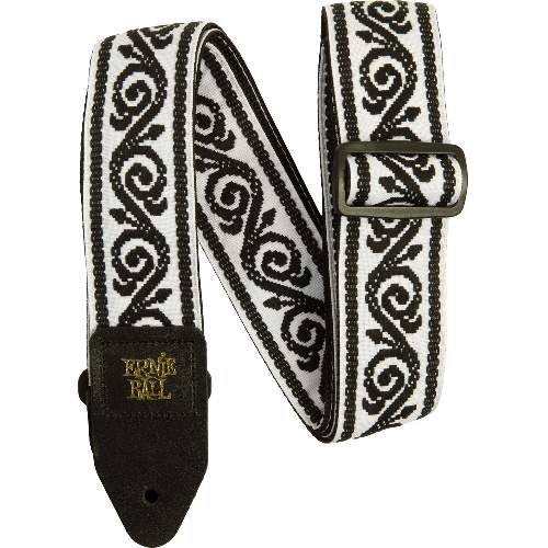 Pasek do gitary wykonany z trwałej i wygodnej polipropylenowej plecionki. Seria Jacquard. Zakończenia skórzane. Regulowana długość od 104 cm do 182 cm. Wzór żakardowy: Black Vine.