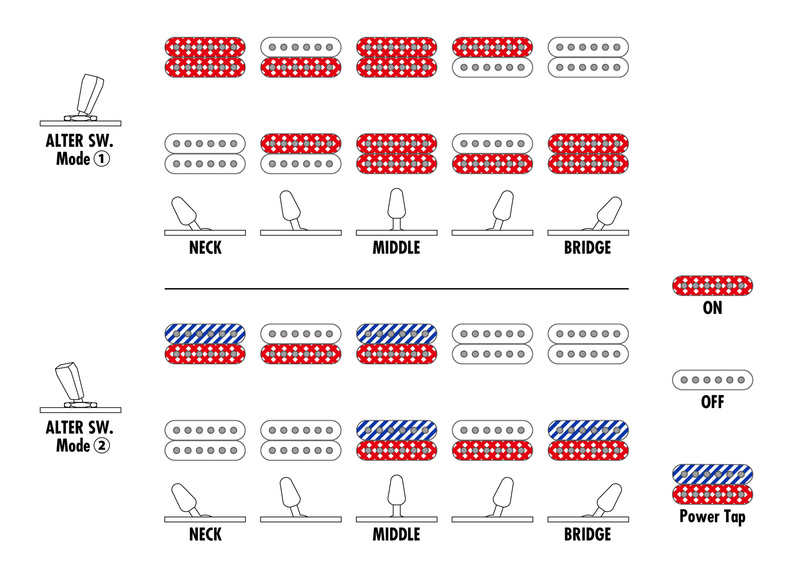 Przełączniki: 5-pozycyjny selektor przetworników, przełącznik Alter Switch