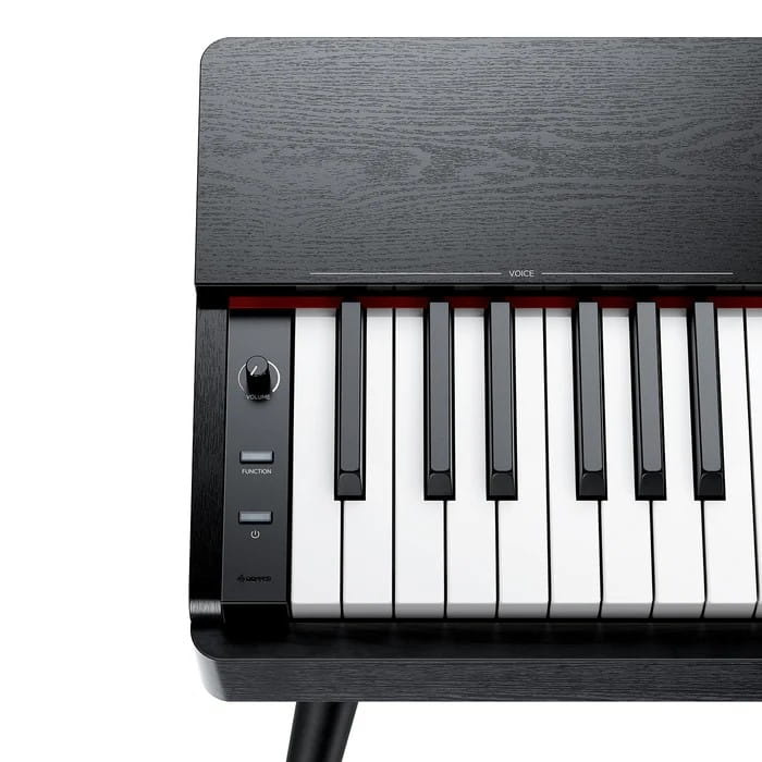 Minimalistyczna forma z gradientowymi nogami rurowymi, materiałem z syntetycznego drewna i ABS, inspirowana skandynawską estetyką. Kompaktowe wymiary i niska waga ułatwiają przenoszenie i integrację z nowoczesnymi wnętrzami. W zestawie trójpedałowy system (sustain, soft, sostenuto), regulowana ławka oraz dostęp do aplikacji Melodics z lekcjami online.